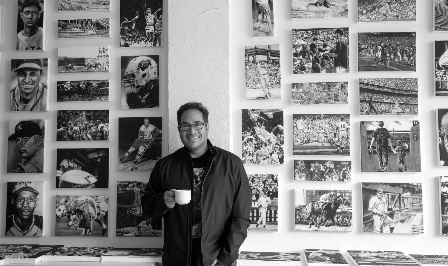 DAVE HOBRECHT is a world-renowned sports artist whose work is collected by art patrons across the globe. He is known for his classic, yet innovative black and white sports paintings, dramatic sports subjects, and masterful technique.